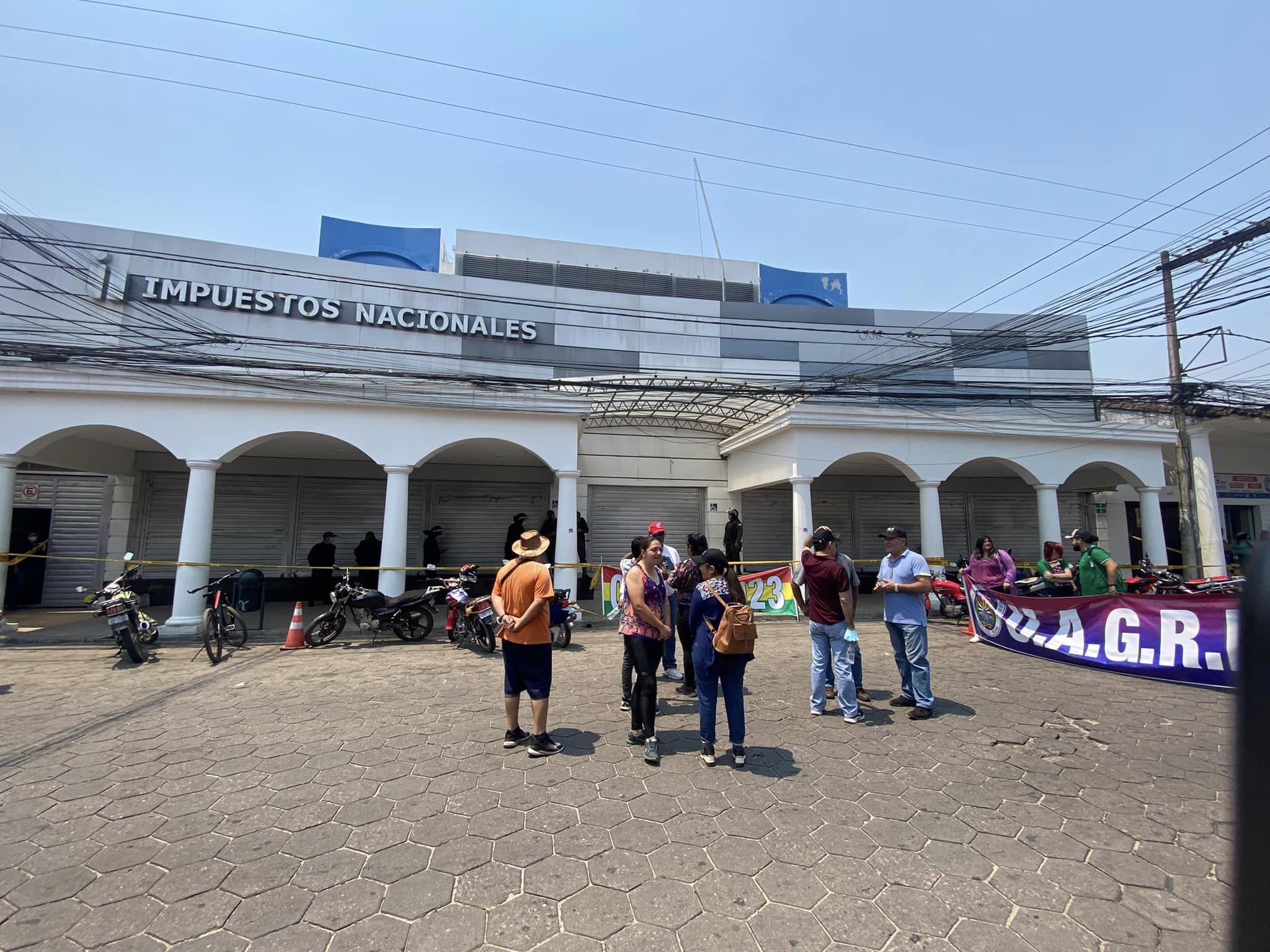 La #UAGRM instala vigilia pacífica en Impuestos Nacionales en la calle Sucre en demanda del Censo en 2023