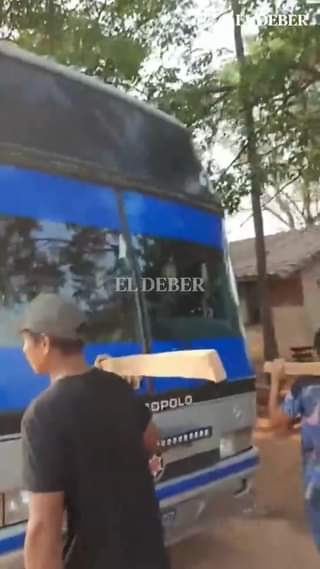 En #Guarayos no dejan pasar un bus que transportaba policías hacia Beni.