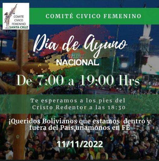 El comité civil femenino convoca al día de ayuno nacional esta viernes de 7:00 a 19:00 hrs.Categorías NoticiasEtiquetas , Facebook, Gigavisión 10/11/2022 [vid_embed] Fuente: Gigavisión => Recibir por Whatsapp las noticias destacadas