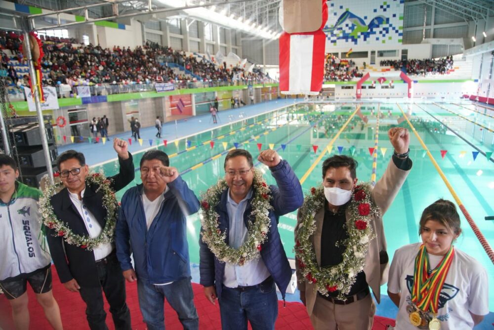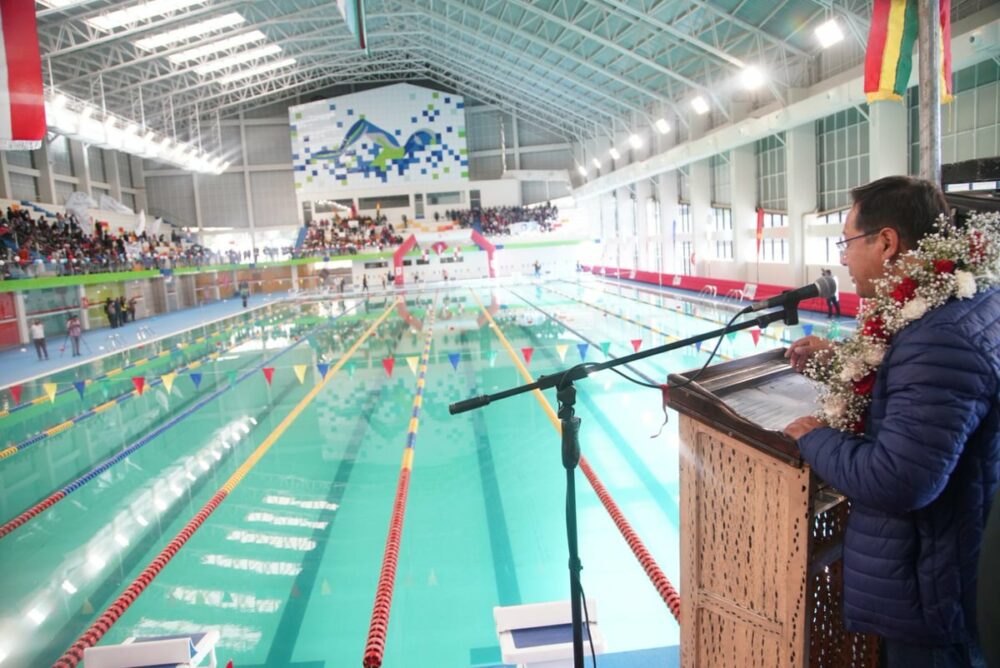 Hoy, como un justo homenaje al aniversario por los 212 años de la gesta libertaria del valiente pueblo de #Potosí, entregamos una obra anhelada por las potosinas y potosinos, como es la Piscina Olímpica, cuya inversión asciende a Bs45 millones.