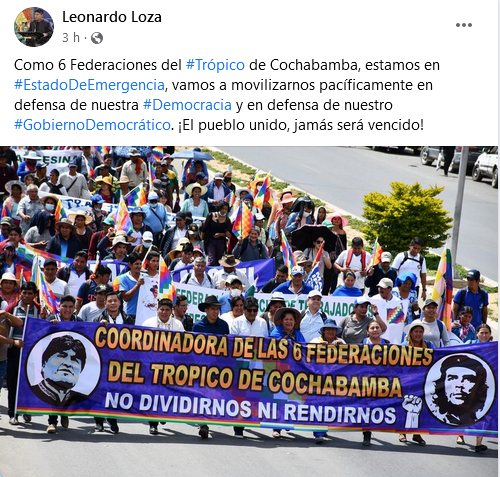 Senador Loza dice que las 6 Federaciones del #Trópico se declaran en estado de emergencia