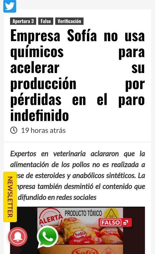 Bolivia Verifica confirma que la información sobre la Empresa Sofia es falsa, «No usan químicos para acelerar producción por las pérdidas del paro cívico»