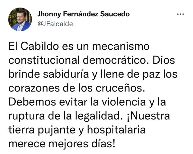 Jhonny sobre el #Cabildo:»Dios brindre sabiduría y llene de paz los corazones de los cruceños»