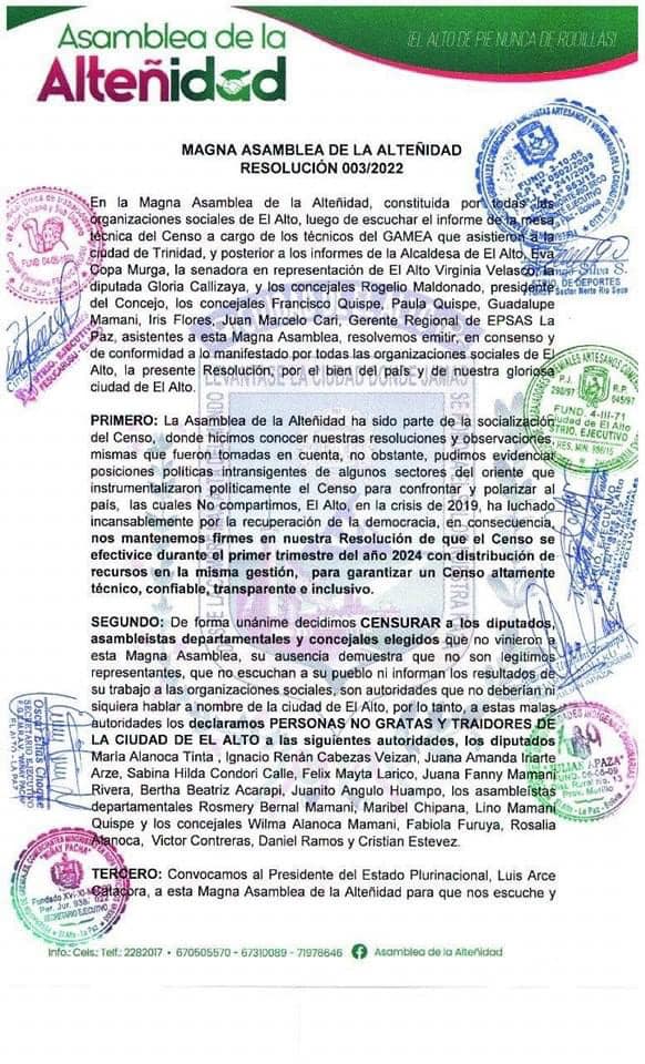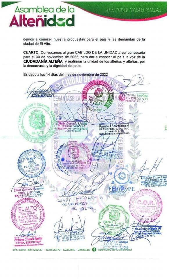 Asamblea de la Alteñidad resuelve llamar a Cabildo de la Unidad el próximo 30 de noviembre. #ElAlto