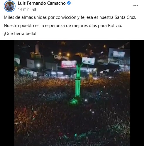 Camacho: #SantaCruz es la esperanza de mejores días para Bolivia