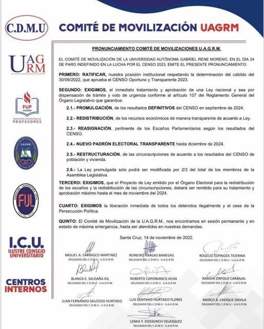 #SCZ: Comité de Movilizaciones de la #UAGRM ratifica pedido de #Censo2023