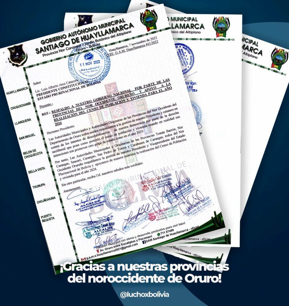 A nuestras autoridades municipales y originarias de las provincias del noroccidente del departamento de #Oruro, gracias por ese permanente apoyo que nos permite seguir fortaleciendo la reconstrucción de la Patria. https://t.co/HhxiPYPgxb