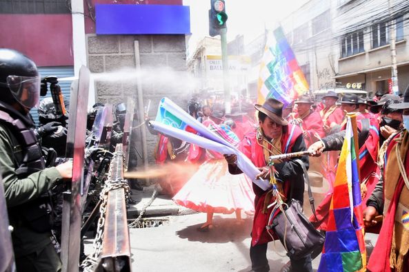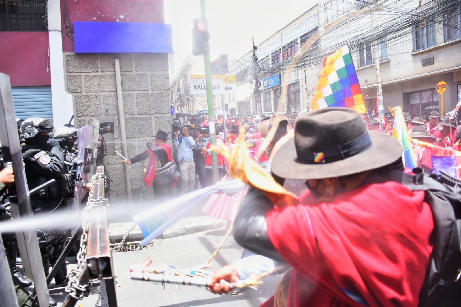 #LaPaz: Ponchos rojos fueron gasificados al intentar ingresar a la plaza Murillo