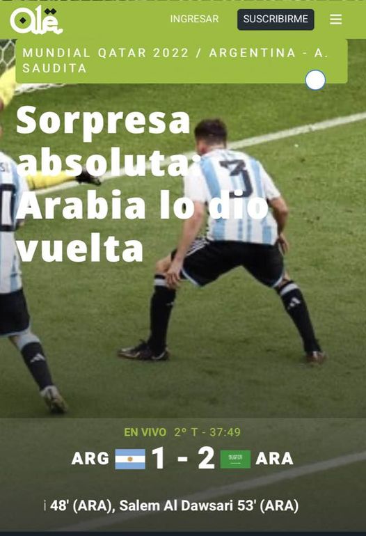 “Sorpresa absoluta”, dice la prensa Argentina. Falta poco y Arabia Saudita le gana 2 a 1 a