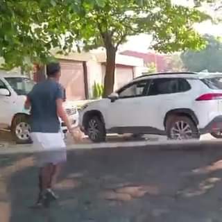 Una pedrada rompe un vidrio de un vehículo dejado cruzado, bloqueando