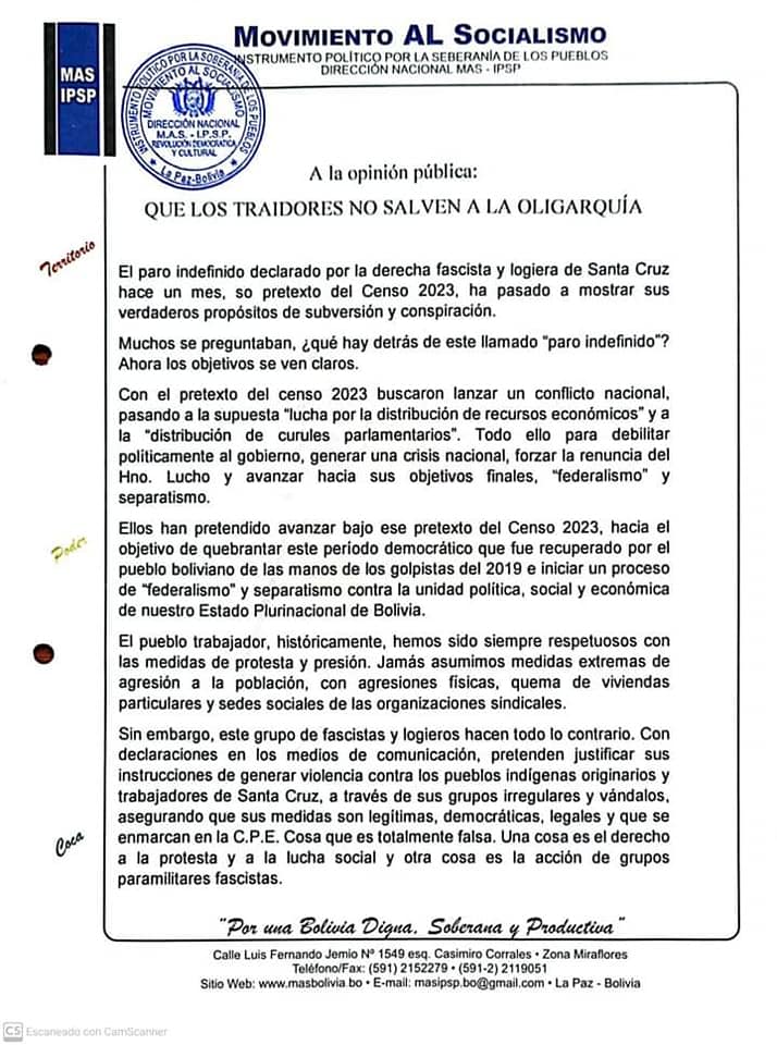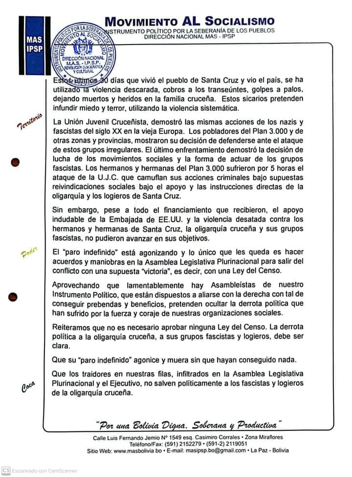 El MAS pide a legisladores “traidores” no aprobar la #LeyDelCenso