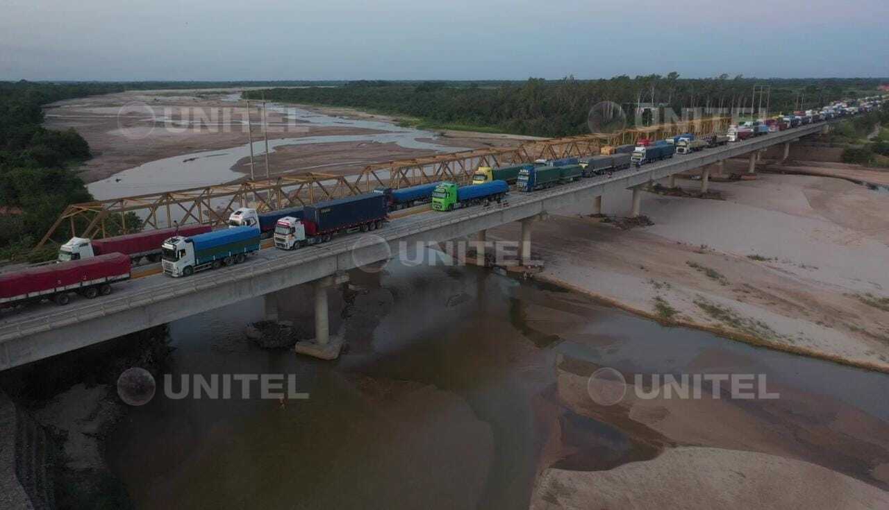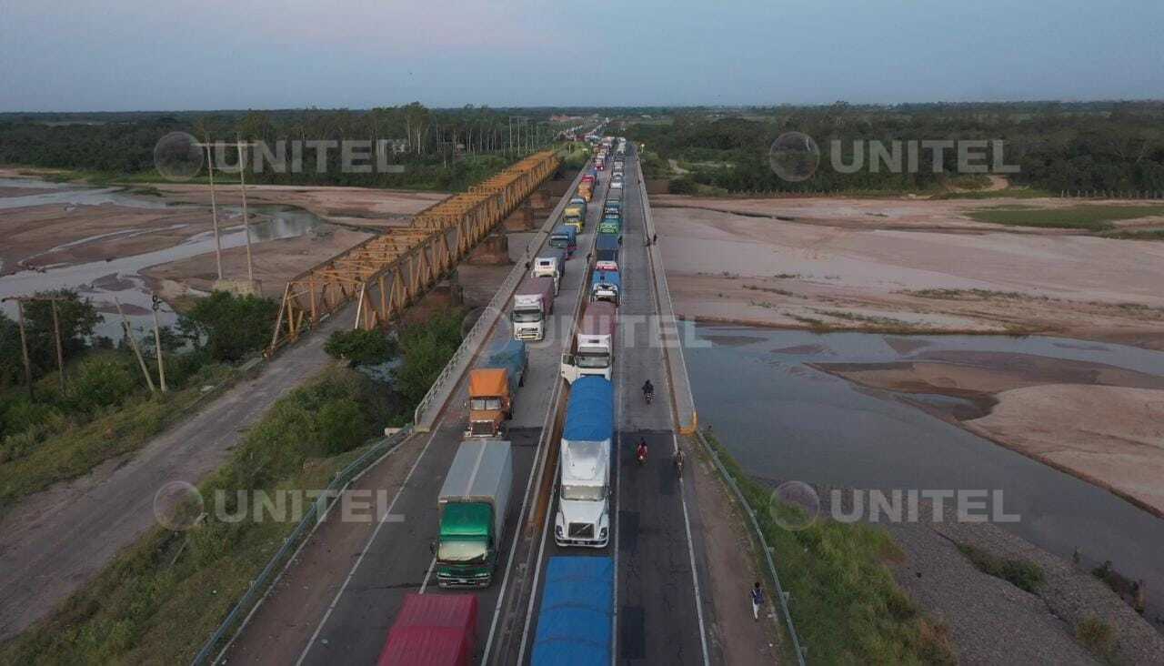 #SCZ: Larga fila de camiones en puente de la Amistad