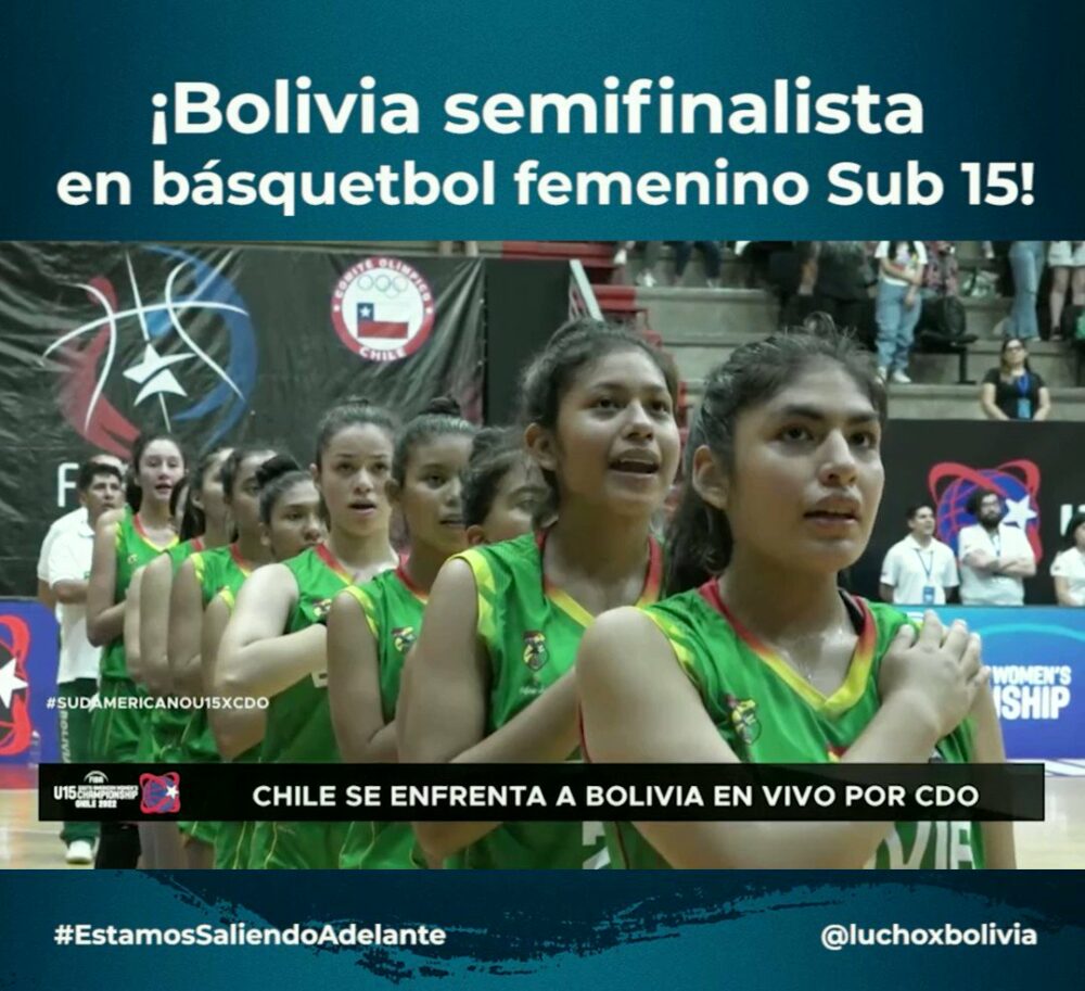 Nuestra Selección Femenina de Básquetbol brilla en el Sudamericano Sub15 de #Chile, donde logró su 2da victoria tras ganarle al anfitrión y avanzó a la semifinal. Estamos orgullosos de ustedes y seguros que con garra y disciplina, seguirán llevando en alto el nombre de #Bolivia🇧🇴 https://t.co/EdCq9YnD8c