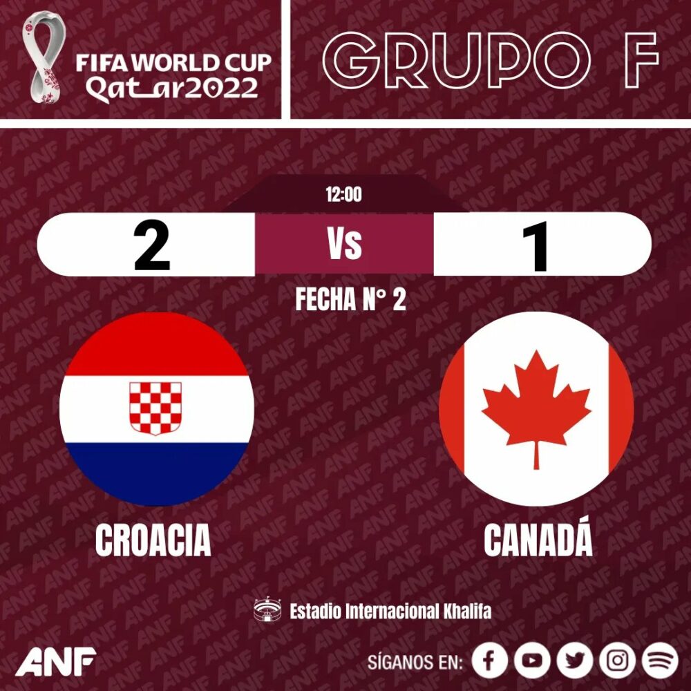 ⚽️ #Ultimo | ¡Finaliza el primer tiempo! #Croacia se impone 2-1 a #Canada en la segunda fecha del Grupo F.