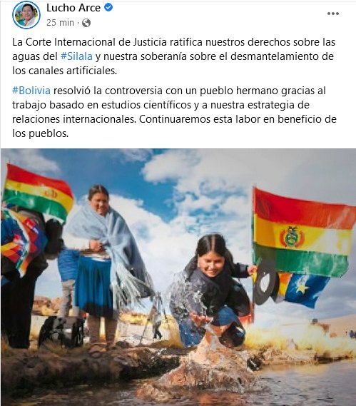 Presidente Arce ve positivo #FalloSilala y dice que #Bolivia resolvió la controversia gracias al trabajo basado en estudios científicos y a su estrategia de relaciones internacionales