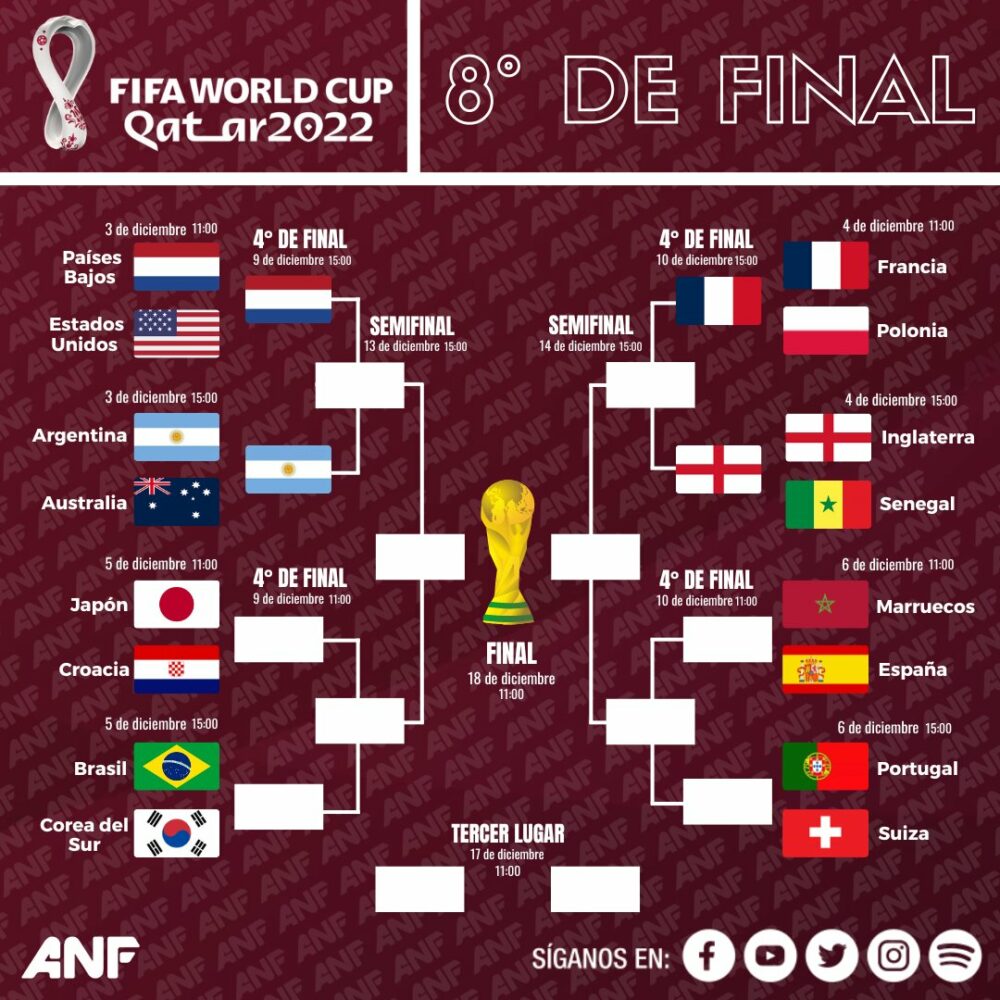 ⚽️ #ANF | Tras disputarse cuatro partidos de la fase de octavos de final, #PaisesBajos, #Argentina, #Francia e #Inglaterra clasificaron a la siguiente instancia. #Catar2022 #MundialQatar2022 #Mundial pic.twitter.com/rYIHN5nZ4X
