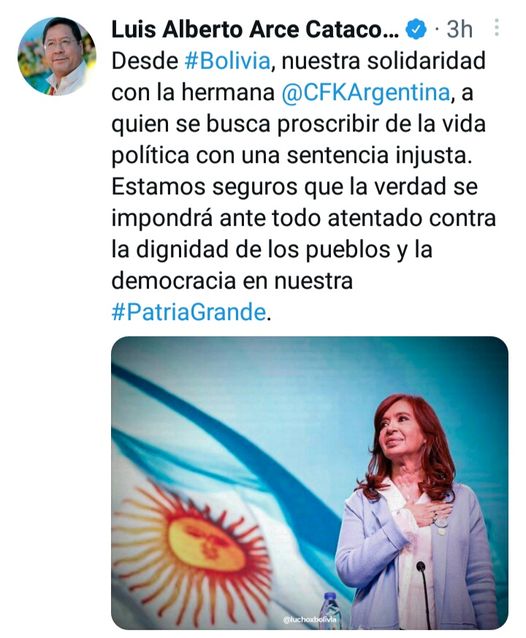 Presidente Arce expresa su solidaridad a Cristina Kirchner