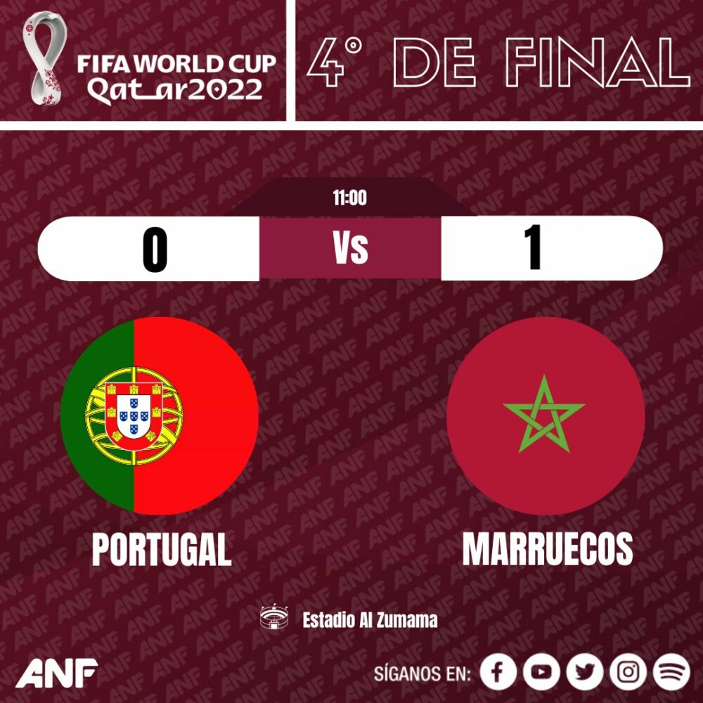 ⚽️#Ultimo | ¡Finaliza el partido! #Marruecos vence 1-0 a #Portugal y es el tercer clasificado a semifinales.