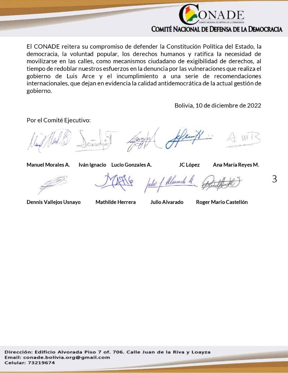 #Conade denuncia que el gobierno de Luis Arce emplea el “terrorismo de Estado”