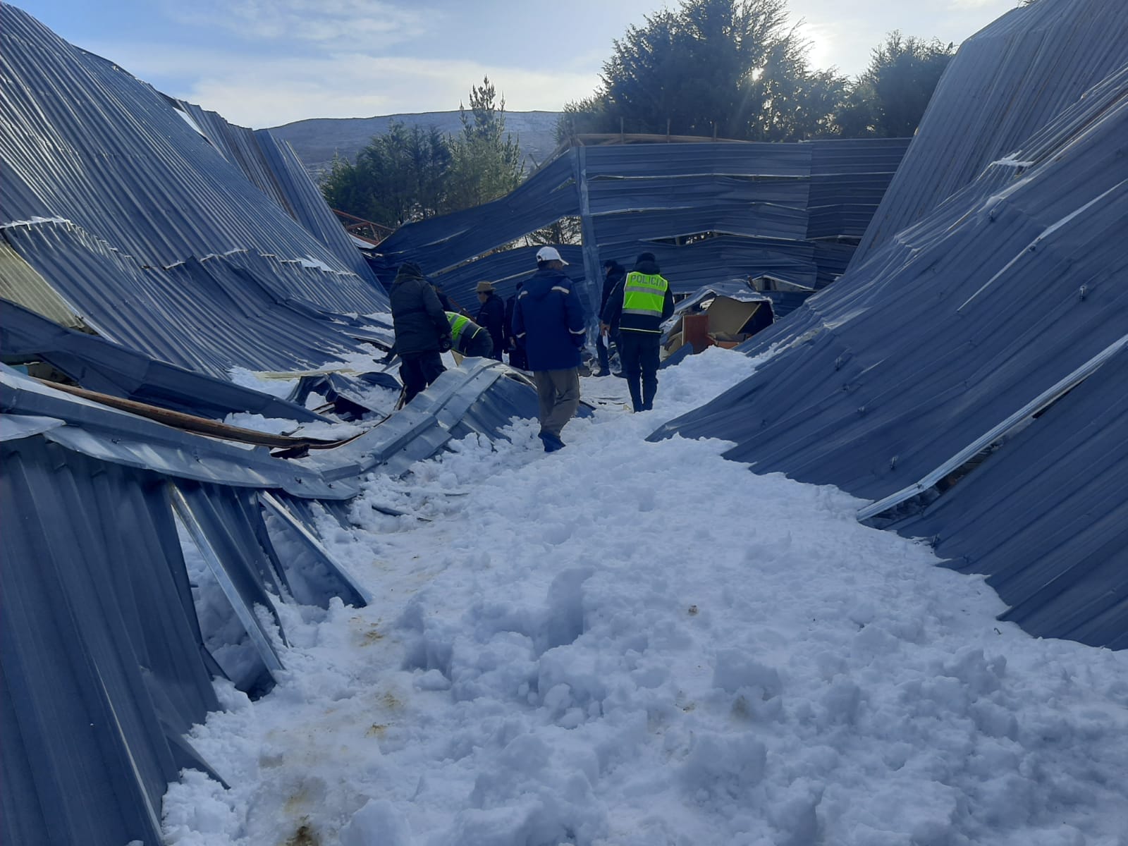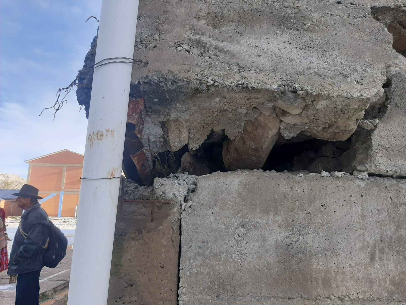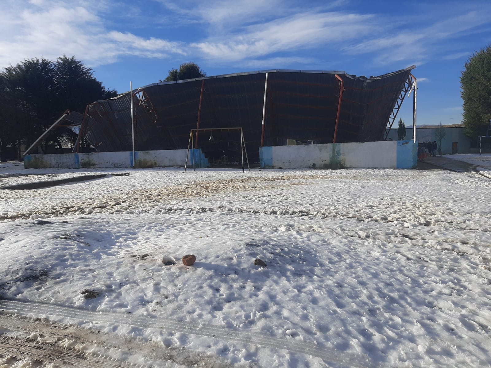 #LaPaz Así quedó la Unidad Educativa Gualberto Villarroel, de la comunidad Santiago de Pacharia en el municipio Omasuyos tras fuerte granizada que causó derrumbe del tinglado