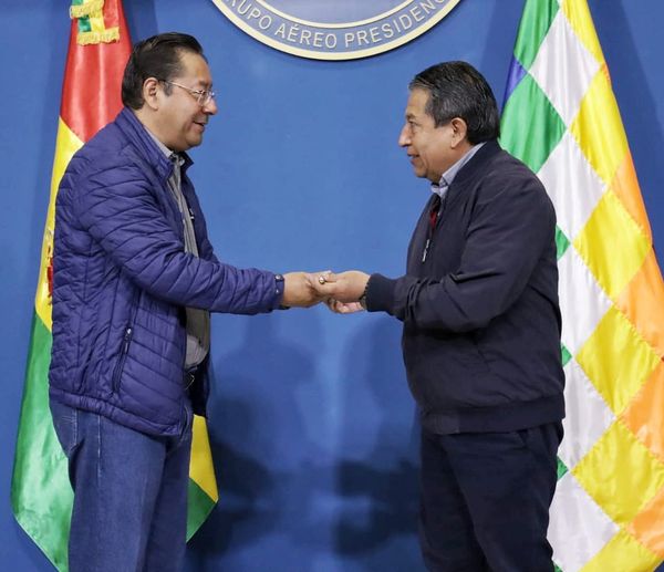 🔵 #ANF | @LuchoXBolivia entregó el bastón presidencial al vicepresidente @LaramaDavid antes de ausentarse del país para participar de la XXII Cumbre del ALBA-TCP, evento que se desarrollará en #Cuba. https://t.co/AcxYGgJHfY