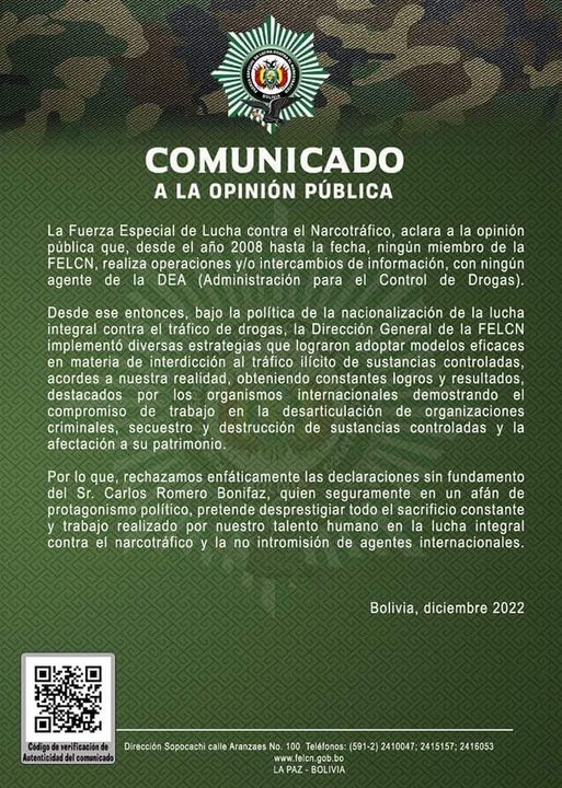 «Rechazamos enfáticamente las declaraciones sin fundamento de Carlos Romero», dice la FELCN ante denuncia del exministro