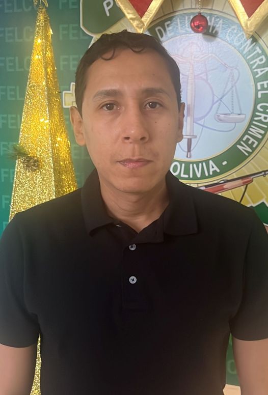 Fernando Pacheco detenido. Imagen de hoy del ex secretario de Salud de la Gobernación de Santa Cruz.