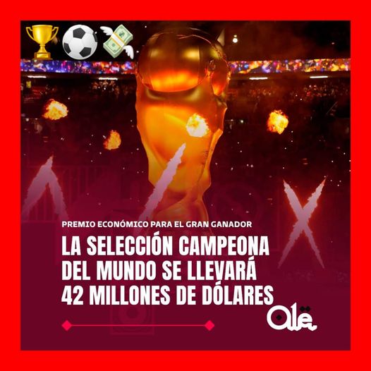 🔎 La selección que salga vencedora del duelo entre Argentina y Francia embolsará un total de 42 millones de dólares, mientras que el subcampeón 30 millones