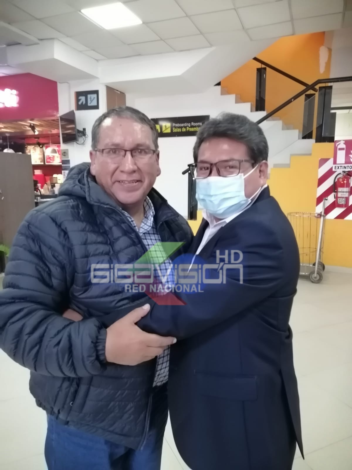 #LaPaz fotografía del ex comandante de la Armada, Almirante Gonzalo Jarjuri, en el Aeropuerto de El Alto junto a su abogado Ever Vera antes de partir a Santa Cruz a cumplir su detención Domiciliaria.