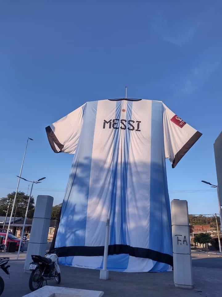 Walter Castillo es el autor de la camiseta argentina más grande, al menos hasta el momento, que fue confeccionada y se luce en Hipólito Yrigoyen.