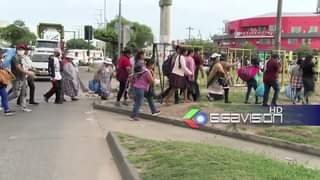 #SantaCruz: Comerciantes mañaneros, no pudieron asentarse para vender sobre las avenidas del 4to anillo Cumavi, intentaron ingresar a los predios de la ferroviaria, pero sus portones fueron soldados y dejaron vagones al interior.