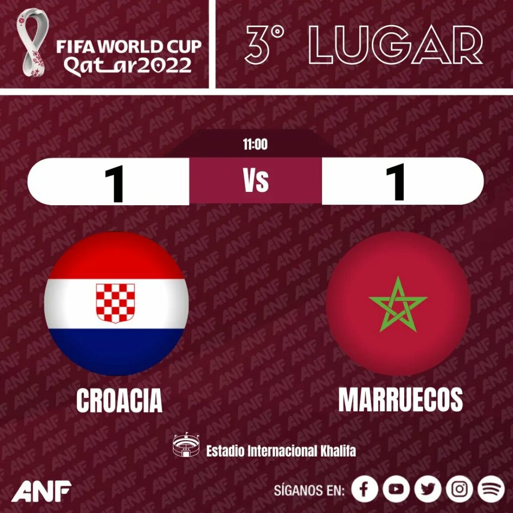 ⚽️ #ANF | Min 33 (PT) #Croacia y #Marruecos empatan 1-1 por el tercer lugar del #Mundial.#MundialQatar2022 #Catar2022 pic.twitter.com/nnjYspt5Ha