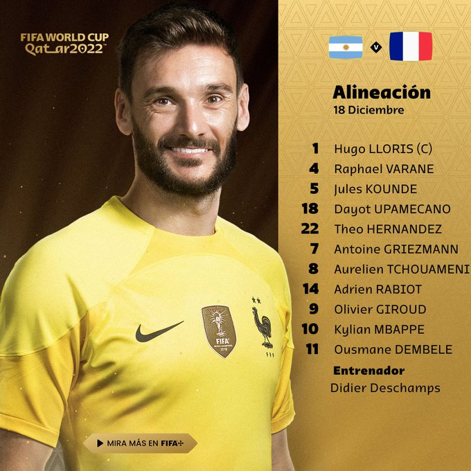 ⚽️ #Ultimo | Estos son los oncenos titulares de #Francia y #Argentina que desde las 11.00 rivalizarán para conocer al campeón del #MundialQatar2022.#Mundial #Catar2022 #Futbol pic.twitter.com/XIXISYdRas
