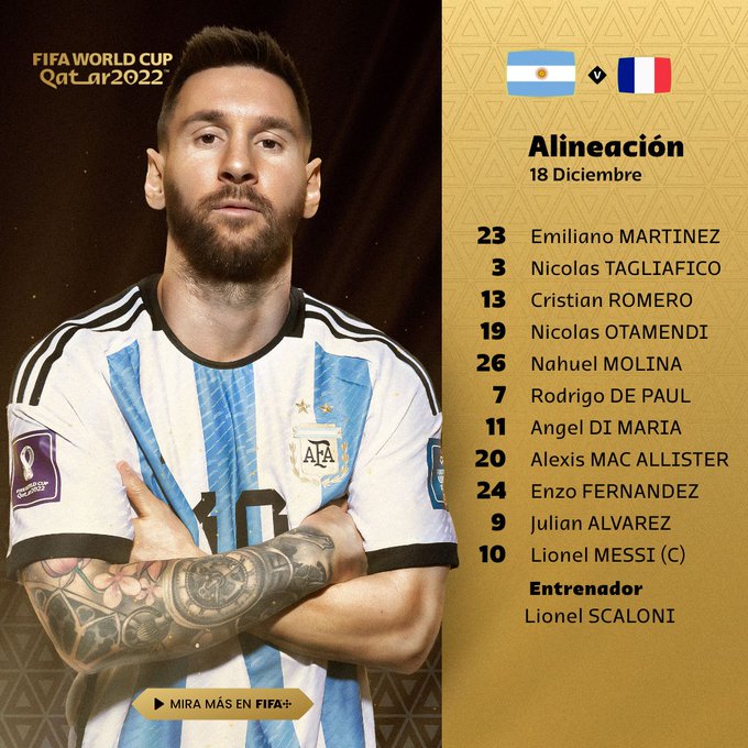⚽️ #Ultimo | Estos son los oncenos titulares de #Francia y #Argentina que desde las 11.00 rivalizarán para conocer al campeón del #MundialQatar2022.