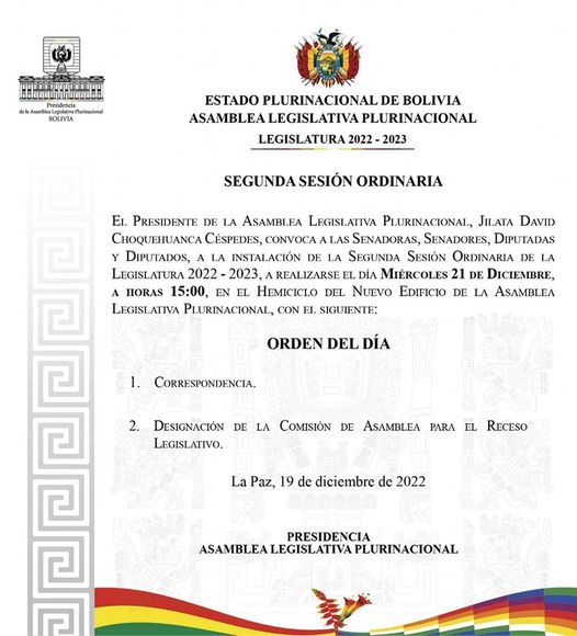 Convocan a sesión de Asamblea para elegir comisión de receso por fin de año desde el lunes 26 de diciembre