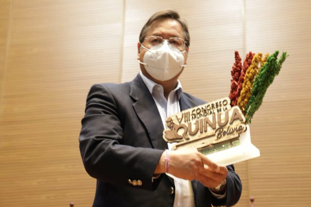 Hoy en Casa Grande del Pueblo, lanzamos la octava versión del Congreso Mundial de la Quinua. El Gobierno Nacional está dispuesto a invertir en la industrialización de la quinua, debemos fortalecer nuestra producción, para #Bolivia y el mundo. Éxitos en este importante evento. https://t.co/MzJaZba2KP