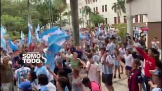 La euforia por el campeón mundial Argentina, se traslado a la plaza 24 de Septiembre, cientos de hinchas celebran la victoria.