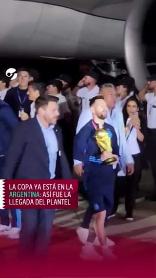 TOCÓ 🏆 SUELO 🇦🇷 Con Lionel a la cabeza, la selección Argentina desfiló con la Copa del Mundo por una alfombra roja que prepararon en el aeropuerto de Ezeiza. 🎉