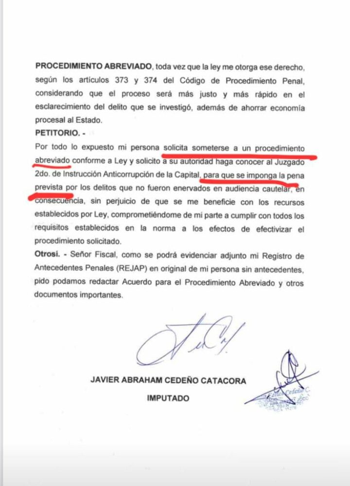 Está en Palmasola y con el proceso abreviado busca aliviar sus penas