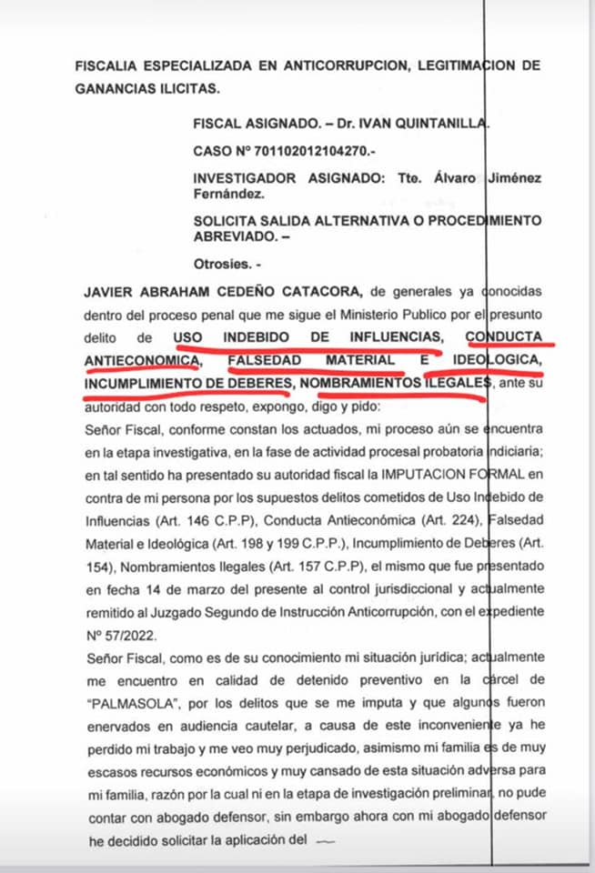 Javier Cedeño se acoge a proceso abreviado y acepta sus culpas en el caso ítems fantasmas.