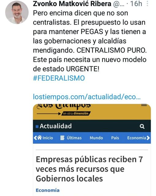 Matkovic: «El presupuesto lo usan para mantener pegas y las tienen a las gobernaciones y alcaldías mendigando»