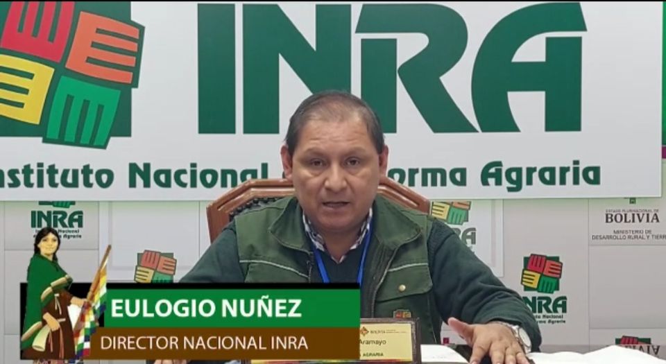 Eulogio Núñez, director nacional del Instituto Nacional de Reforma Agraria (INRA), informó que se logró sanear 92% de las tierras en Santa Cruz y el otro 8% son predios en conflicto.