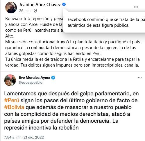 Añez a Evo: «Tu única medalla es de traidor a la Patria»
