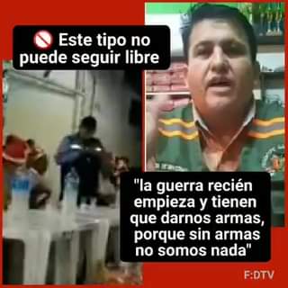 El masista René Troncoso, dirigente de los ilegales “mañaneros” , aparece en un video en el que, durante un acto público, pide al ministro de Obras Públicas, Édgar Montaño, “armas para ir a la guerra” contra instituciones que llevaron adelante el paro de 36 días