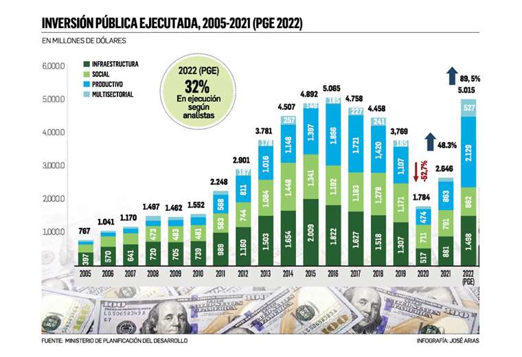 La ejecución es la más baja desde 2014, ese año la inversión pública programada fue de $us 4.507 millones y se ejecutó en un 99,7%.