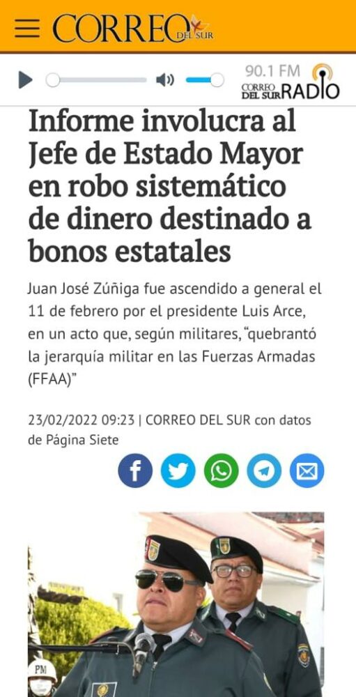 Jefe militar con sumario ejecutoriado por desvío de dinero de los bonos Juancito Pinto y Renta Dignidad, a cargo del seguimiento para intentar defenestrarnos, trata de desacreditarnos. Meter la pata es deshonrar el uniforme y no respetar la carrera militar ni la institucionalidad https://t.co/i9paqftfkh