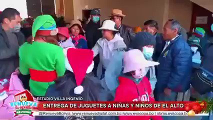 🔵 #Ahora | La alcaldía de #ElAlto hace la entrega de juguetes en el estadio de Villa Ingenio. Cientos de niños y niñas acudieron a este escenario deportivo para recibir un presente y disfrutar de juegos, música y baile. https://t.co/0Kri7rmboC