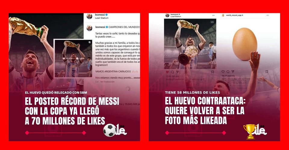 Su publicación récord es con una imagen del 🔟 sobre los hombros de Kun Agüero, que levantaba el dorado trofeo del mundial con sus dos manos y con una sonrisa que explicaba toda su satisfacción por lo que acababa de lograr.