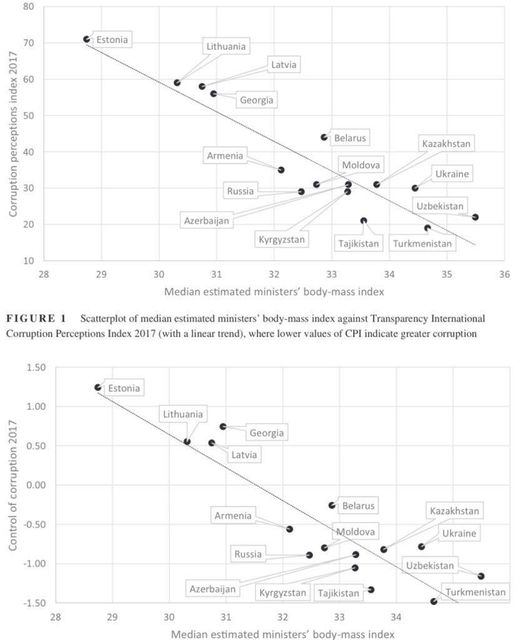 El estudio tomó imágenes del gabinete ministerial de 15 países y calculó el índice de masa corporal de cada ministro (299 en total). El autor, Pavlo Blavatskyy, después correlacionó la masa corporal media del gabinete (un indicador del nivel de obesidad) con índices de corrupción de distintas organizaciones internacionales. El autor concluye que la obesidad de los ministros es un indicador directo de los niveles de corrupción de una región. Queda ahora saber cómo estamos en Bolivia 🇧🇴?