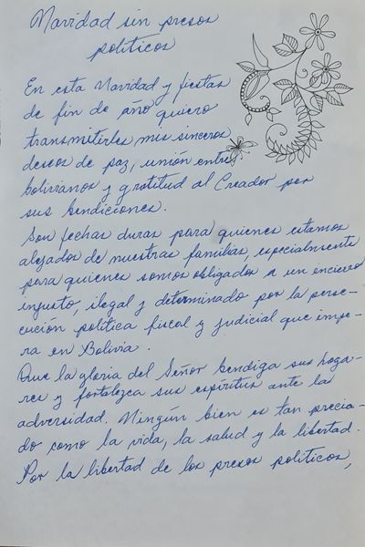 «Una Navidad sin presos políticos», inicia carta de Añez donde desea a toda la población una feliz Navidad